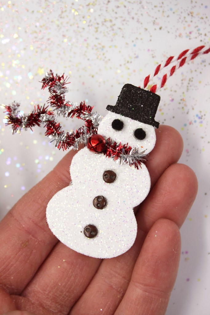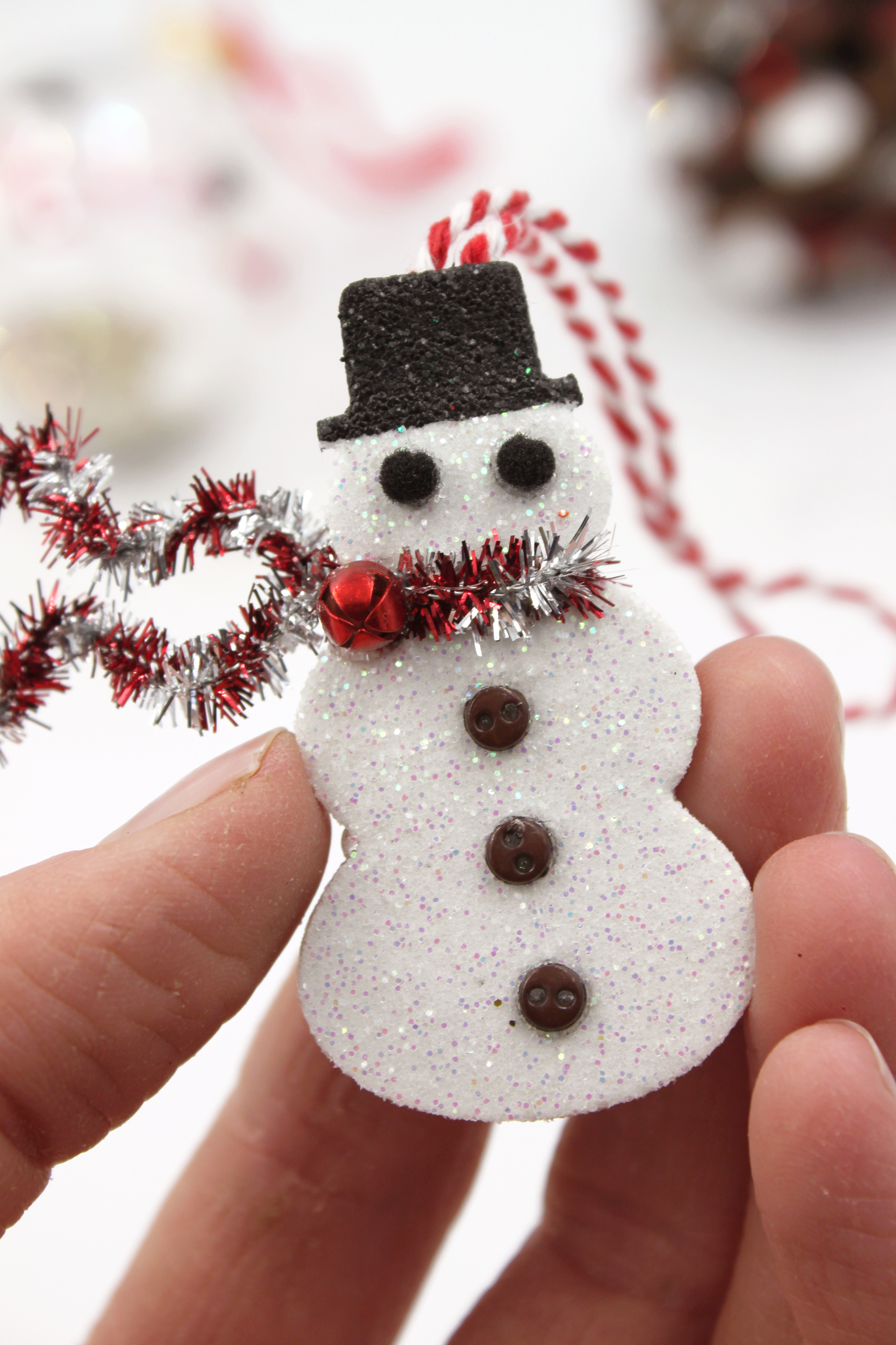 Other craft supplies required for this miniature snowman include red and silver pipe cleaner (or chenille stems), micro miniature bells (also available in our Etsy store), white glittery foam board and black acrylic paint.